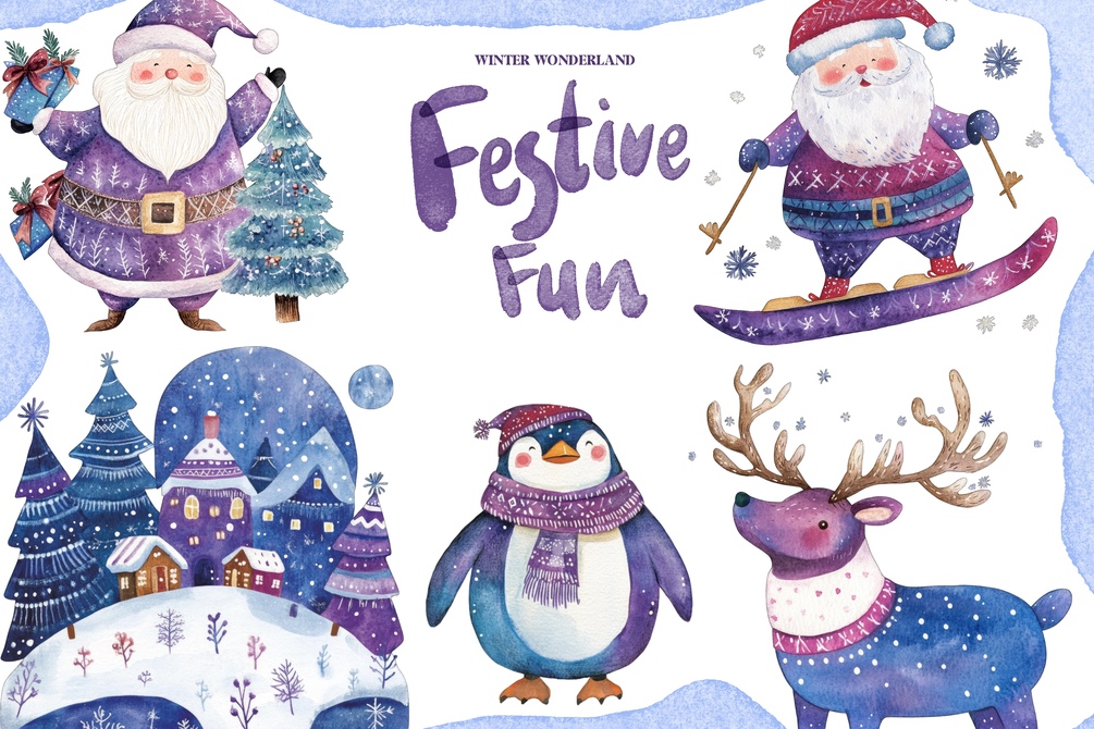 This collection is designed in an enchanting purple festive palette with a delicate watercolor style, which is perfect for creating holiday cards, scrapbook pages, gift tags, digital planners, party invitations, social media post and more. Bring the joy and magic of Christmas to your creative projects with these elegant, one-of-a-kind illustrations!