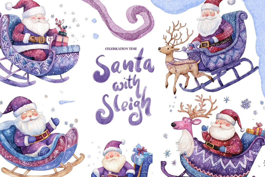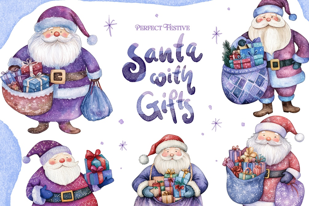 This collection is designed in an enchanting purple festive palette with a delicate watercolor style, which is perfect for creating holiday cards, scrapbook pages, gift tags, digital planners, party invitations, social media post and more. Bring the joy and magic of Christmas to your creative projects with these elegant, one-of-a-kind illustrations!