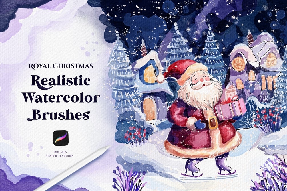 Bring the magic of the holiday season to life with this enchanting collection of watercolor brushes! Designed to mimic the natural flow and texture of traditional watercolor, these brushes are perfect for creating festive Christmas illustrations. From grainy texture effect to detailed strokes, each brush is crafted to add a touch of warmth and charm to your digital artwork.