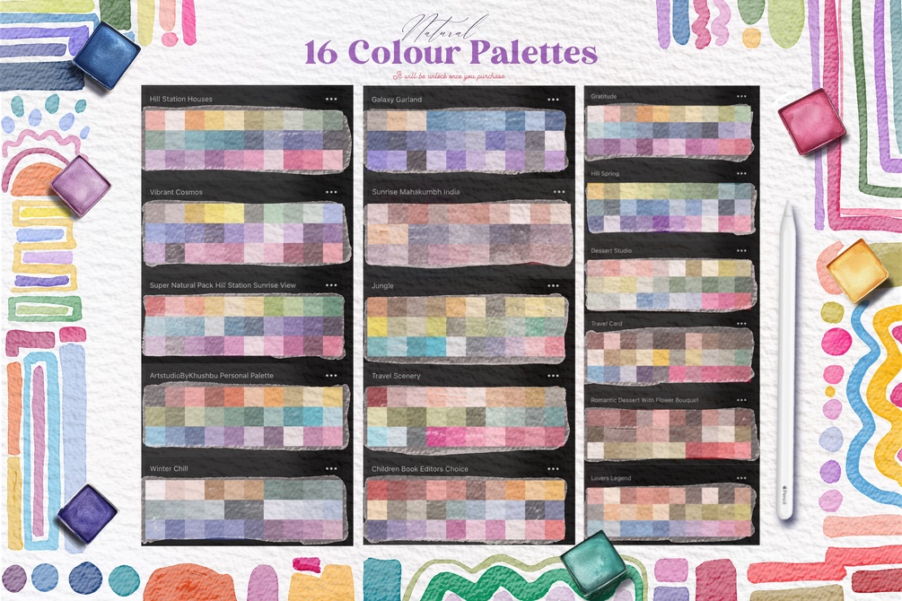 Perfect for professional illustrators and designers, they offer effortless control while maintaining organic, natural textures. Whether you're creating fine art, landscapes, or expressive washes, these brushes bring your digital canvas to life with unparalleled realism. Elevate your creativity with the most natural watercolor experience in Procreate!