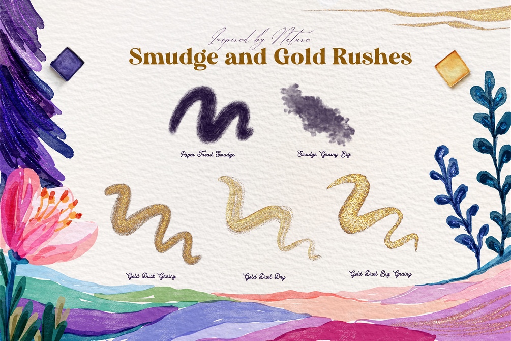 34 Brushes (Super Natural watercolour brushes, lettering, smudge and gold rush for sparkling effect)